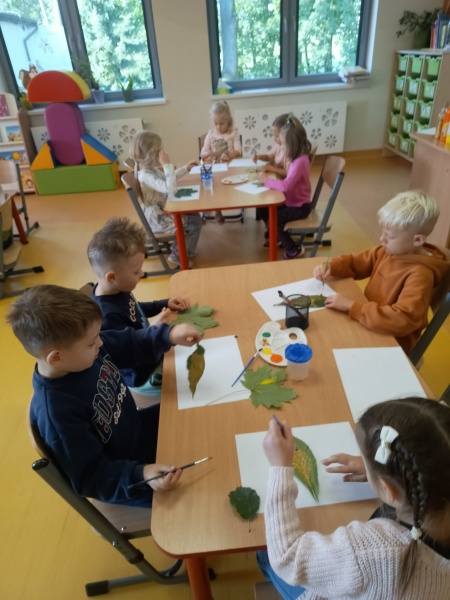 Następnie wykorzystały zebrane liście do pracy plastycznej. Było wesoło i kolorowo!