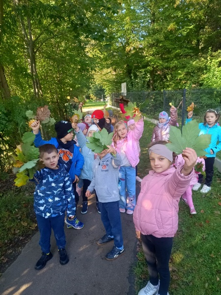 Dzieci z grupy "Poszukiwacze" poszerzały swoją wiedzę na temat drzew oraz rozpoznawania liści poprzez praktyczne działania z wykorzystaniem zmysłu dotyku i wzroku.