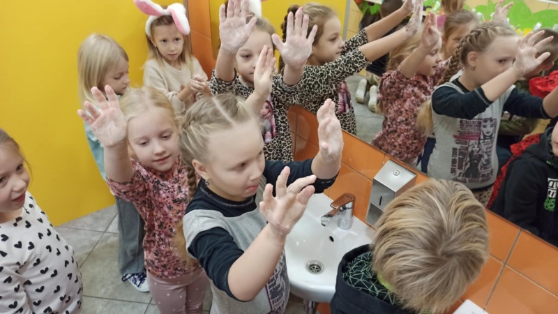 W tym tygodniu grupy "Poszukiwacze" oraz "Zuchy" obchodziły Światowy Dzień Mycia Rąk, który miał na celu kształtowanie prawidłowych nawyków higienicznych poprzez zabawy