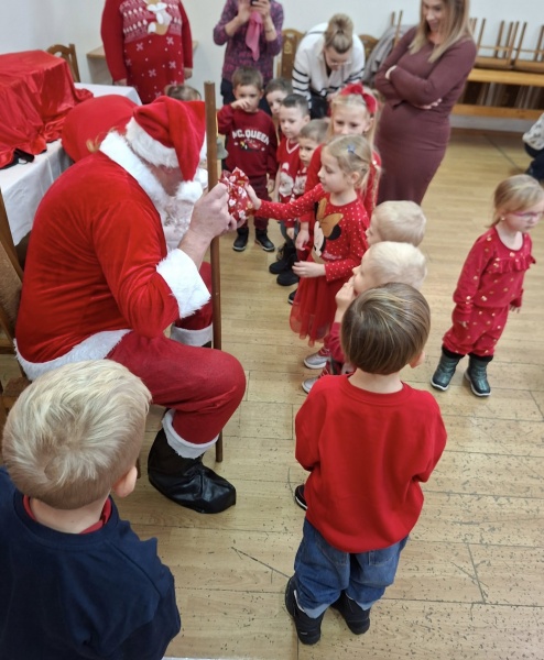 z grupy Krasnale i ich rodzice wzięli udział w spotkaniu z Mikołajem,